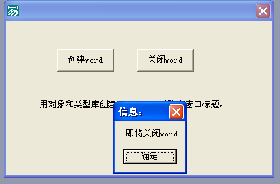 这样我们运行word,单击按钮2结束,就会出现信息框了。